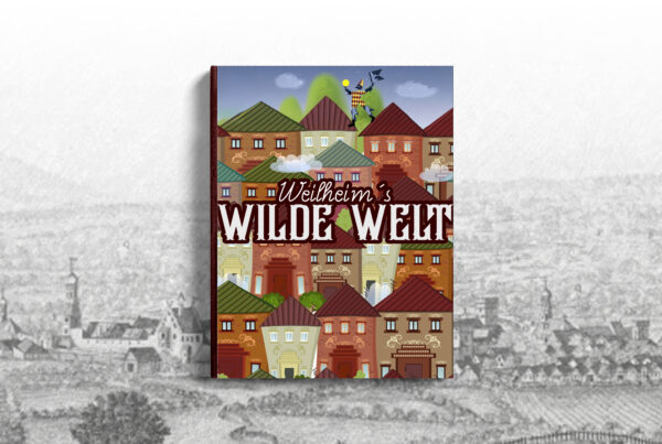 Magische Figuren in einem märchenhaften Weilheim. Abenteuer zwischen Dächern, Bergen und Gassen - mit Seppio, dem Weilheimer Harlekin, der Schattenkatze und weiteren Gestalten.