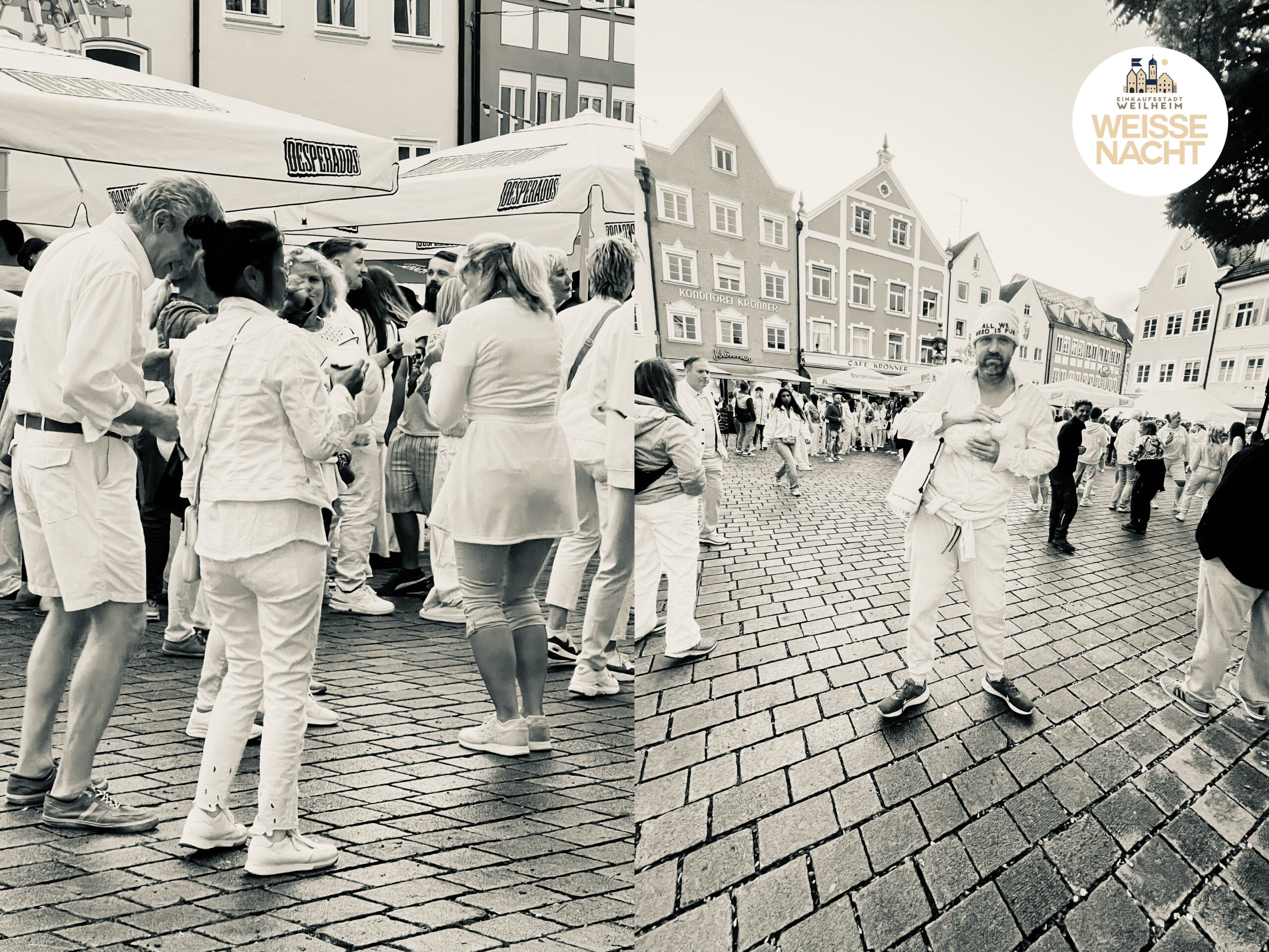 Die Weiße Nacht ist mehr als ein Abend – sie ist ein Versprechen: dass inmitten der Stadt eine Atmosphäre entstehen kann, die leicht, stilvoll und gemeinschaftlich ist. Für einen Abend verwandelt sich Weilheim in ein mediterranes Bühnenbild: weiße Tischdecken, perlender Champagner, Kellner in weißem Hemd, dazu feine Musik, kulinarische Höhepunkte und ein Publikum, das sich auf dieses Ritual einlässt.